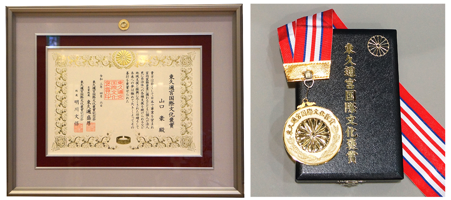 令和3年4月6日 東久邇宮国際文化褒賞を賜りました。